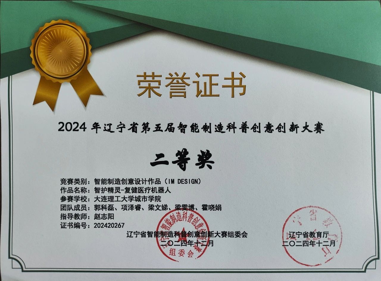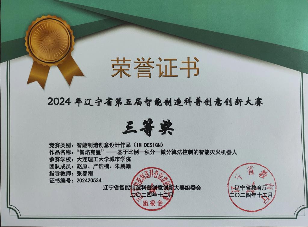 在2024年辽宁省第五届智能制造科普创意创新大赛中,电子与自动化学院共有49支队伍获奖,3名教师荣获“优秀指导教师”称号。在获奖队伍中,有省级一等奖4项,省级二等奖18项,省级三等奖27项。