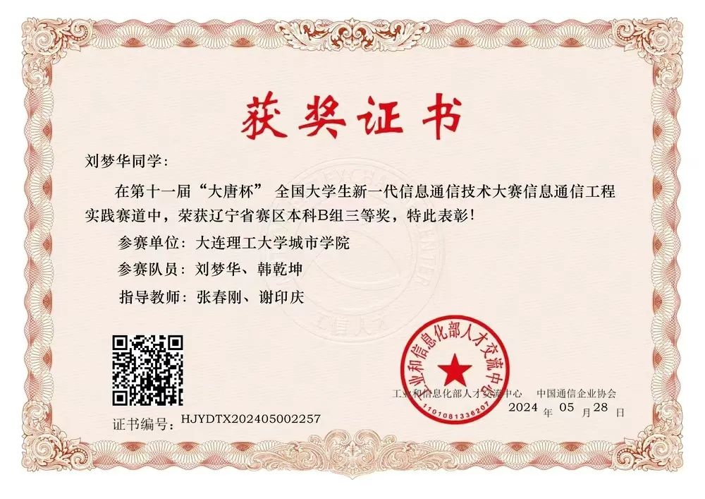 在第十一届“大唐杯”新一代信息通信技术大赛中,电子与自动化学院有40支队伍获奖,其中在双师型教师新一代信息通信技术大赛中荣获国家级二等奖1项,在通信工程赛道中荣获省级一等奖1项,省级二等奖14项,省级三等奖22项,在产教融合5G+创新应用设计赛道中荣获省级二等奖2项。