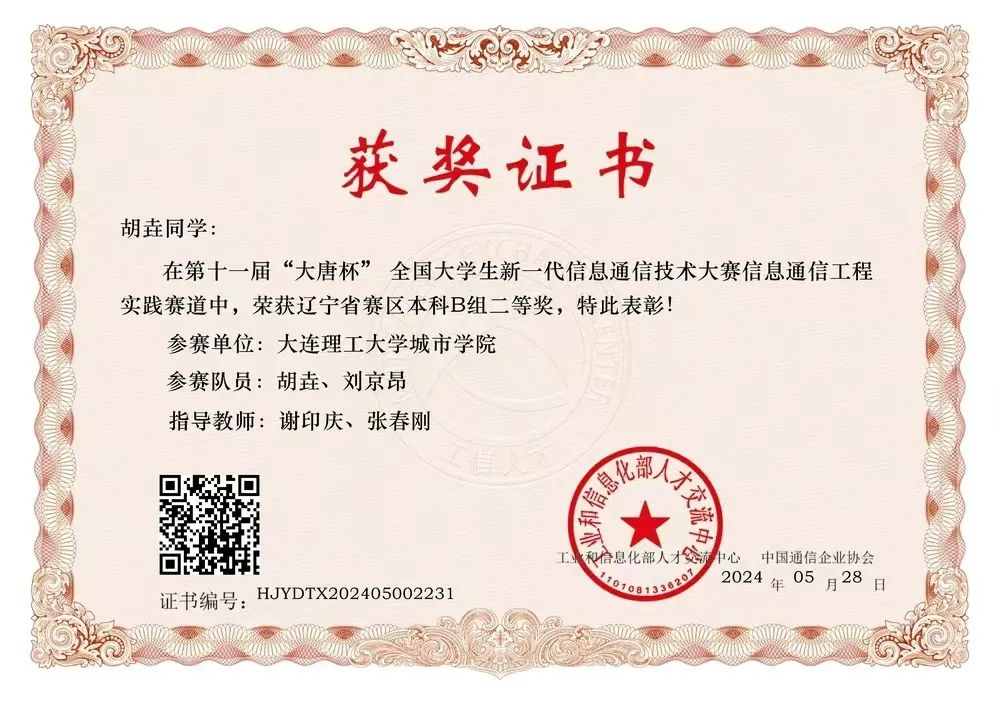 在第十一届“大唐杯”我院通信工程教研室张春刚老师获得“大唐杯”双师型教师新一代信息通信技术大赛国家级二等奖